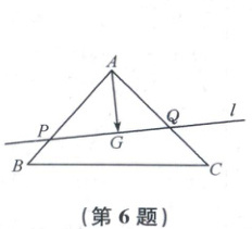 6. [多选题,2025 河北沧州一中等联考]如图,直线 l 过$\triangle ABC$的重心 G(三条中线的交点),且与边 AB,AC 交于点 P,Q 且$\overrightarrow{AP}=\lambda\overrightarrow{AB},\overrightarrow{AQ}=\mu\overrightarrow{AC}$,直线 l 将$\triangle ABC$分成两部分分别为$\triangle APQ$和四边形 PQCB,其对应的面积依次记为$S_{\triangle APQ}$和$S_{四边形PQCB}$,则以下结论正确的是 (