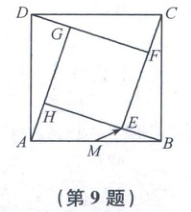 9. [2023 河北保定期末]我国汉代数学家赵爽为了证明勾股定理,创制了一幅“勾股圆方图”,后人称其为“赵爽弦图”. 如图,它是由四个全等的直角三角形与一个小正方形拼成的一个大正方形. 已知$HE = 2EB$,M 为线段 AB 的中点,设 P 为中间小正方形 EFGH 内一点(不含边界). 若$\overrightarrow{MP}=\lambda\overrightarrow{ME}-\overrightarrow{MB}$,则$\lambda$的取值范围是