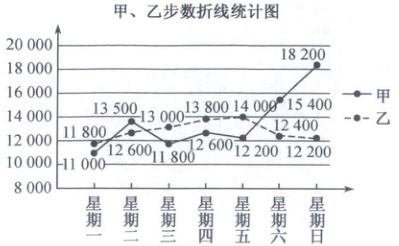 B.这一星期内甲的日步数的平均数大于乙的日步数的平均数