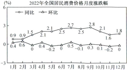 4. [多选题,2025 江苏宿迁期末]如图为 2022 年全国居民消费价格月度涨跌幅情况,则(