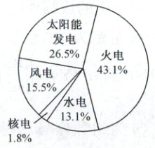 1. [2025 重庆万州阶段调研]我国在 2024 年的全国发电装机容量为 33.5 亿千瓦,包括水电、火电、核电、风电、太阳能发电,其占比如图所示,根据此扇形图,下列说法正确的是(