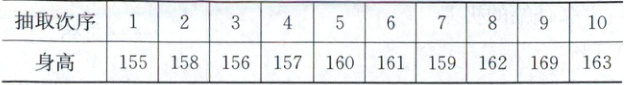 记抽取的第 $i$ 个女生的身高为 $x_i(i = 1,2,3,·s,10)$,样本平均数 $\overline{x}=160$,方差 $s^2=\frac{1}{10}\sum_{i = 1}^{10}(x_i - \overline{x})^2=\frac{1}{10}(\sum_{i = 1}^{10}x_i^2 - 10\overline{x}^2)=15$.