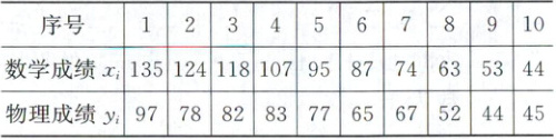9. [2024湖南怀化期末]统计学中,协方差$Cov(x,y)$用来描述两个变量之间的总体的误差.设一组数据$x_{1}$,$x_{2}$,$·s$,$x_{n}$的平均值为$\overline{x}$,另一组数据$y_{1}$,$y_{2}$,$·s$,$y_{n}$的平均值为$\overline{y}$,则协方差$Cov(x,y)=\frac{1}{n}\sum_{i = 1}^{n}(x_{i}-\overline{x})(y_{i}-\overline{y})$.某次考试结束后,抽取了高一年级10名学生的数学成绩$x$、物理成绩$y$如下表: