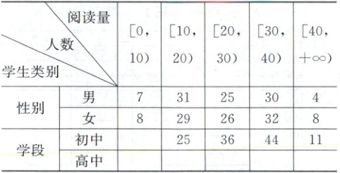 D.这200名学生中的初中生阅读量的第25%分位数可能在区间$[20,30)$内