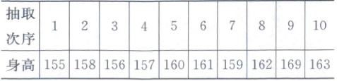 记抽取的第$i$个女生的身高为$x_{i}(i = 1,2,3,·s,10)$,样本平均数$\overline{x}=160$,标准差$s=\sqrt{15}$.