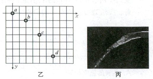(2)某次利用频闪照片探究平抛运动的实验,得到小球运动轨迹中的四个点a、b、c、d如图乙所示.已知图乙中背景方格的边长均为L=10cm,重力加速度g取10m/s².