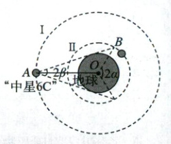 例 1 (2025 重庆乌江新高考协作体月考)2019 年 3 月 10 日,长征三号乙运载火箭将“中星 6C”通信卫星(记为卫星Ⅰ)送入地球同步轨道上,主要为我国、东南亚、澳洲和南太平洋岛国等地区提供通信与广播业务。在同平面内的圆轨道上有一颗中轨道卫星Ⅱ,它运动的每个周期内都有一段时间 t(t 未知)无法直接接收到卫星Ⅰ发出的电磁波信号,因为其轨道上总有一段区域没有被卫星Ⅰ发出的电磁波信号覆盖到,这段区域对应的圆心角为 2α。已知卫星Ⅰ对地球的张角为 2β,地球自转周期为 T₀,引力常量为 G,则根据题中条件,可求出 ( )