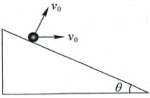 9.AD解析:第一次垂直斜面抛出时,将重力加速度$g$分解为垂直斜面方向和沿斜面方向,则运动时间为$t_{1} = \frac{2v_{0}}{g\cos\theta}$,第二次水平抛出时,有$\tan\theta = \frac{\frac{1}{2}gt_{2}^{2}}{v_{0}t_{2}}$,解得$t_{2} = \frac{2v_{0}\tan\theta}{g}$,则$t_{2} = t_{1}\sin\theta$,A正确,B错误;第一次落在斜面上的位置离抛出点的距离为$s_{1} = \frac{1}{2}g\sin\theta · t_{1}^{2} = \frac{2v_{0}^{2}\sin\theta}{g\cos^{2}\theta}$,第二次小球落在斜面上的位置离抛出点的距离为$s_{2} = \frac{v_{0}t_{2}}{\cos\theta} = \frac{2v_{0}^{2}\sin\theta}{g\cos^{2}\theta}$,则$s_{2} = s_{1}$,C错误,D正确.