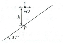 2. (2025 山东济南期末质量监测)如图所示,倾角为 $ 37° $ 的足够长斜面固定在水平地面上,$ O $ 点位于斜面上 $ P $ 点正上方 $ h = 2.5 \, m $ 处,可视为质点的小球在竖直平面内从 $ O $ 点以大小为 $ v = 2 \, m/s $ 的速度向各个方向抛出时,均能落在斜面上.重力加速度 $ g $ 取 $ 10 \, m/s^2 $,$ \sin 37° $ 取 $ 0.6 $,则小球从抛出到落在斜面上的最短时间为 (