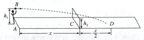 3. 运动员李娜是中国网球的骄傲,有着辉煌的网球生涯.某次李娜将球在边界 $ A $ 的正上方 $ B $ 点水平向右垂直于球网击出,球恰好过网 $ C $ 落在 $ D $ 处,示意图如图所示,不计空气阻力,已知 $ AB = h_1 $,$ AC = x $,$ CD = \dfrac{x}{2} $,网高为 $ h_2 $,下列说法中正确的是(重力加速度为 $ g $ ) (