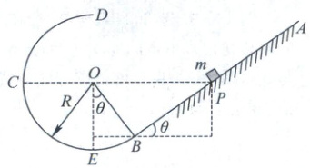 (1)物体从P点出发至最终到达B点速度为0的全过程,由动能定理,有$mgR\cos\theta-\mu mgs\cos\theta = 0$,解得$s=\frac{R}{\mu}$。