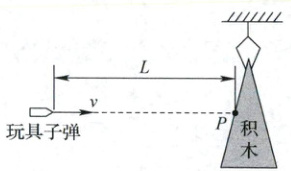 2. (广东卷)如图所示,在竖直平面内,截面为三角形的小积木悬挂在离地足够高处,一玩具枪的枪口与小积木上$P$点等高且相距为$L$.当玩具子弹以水平速度$v$从枪口向$P$点射出时,小积木恰好由静止释放,子弹从射出至击中积木所用的时间为$t$,不计空气阻力.下列关于子弹的运动说法正确的是(