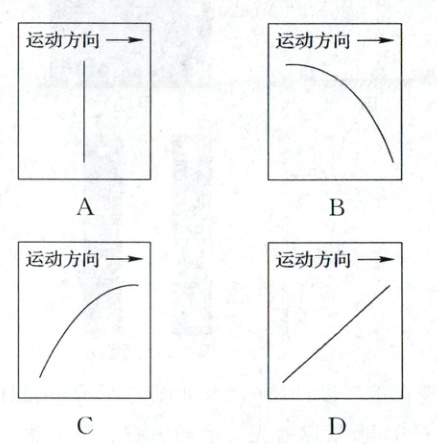 3. (江苏卷)达·芬奇的手稿中描述了这样一个实验:一个罐子在空中沿水平直线向右做匀加速运动,沿途连续漏出沙子.若不计空气阻力,则下列图中能反映空中沙子排列的几何图形是(
