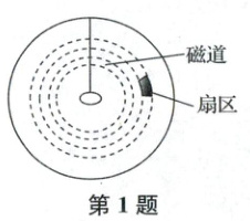 1. (2024 山东枣庄期中)某计算机上的机械式硬盘的磁道和扇区如图所示,这块硬盘共有 $ m $ 个磁道(即 $ m $ 个不同半径的同心圆),每个磁道分成 $ a $ 个扇区(每个扇区为 $ \frac{1}{a} $ 圆周),每个扇区可以记录 $ b $ 个字节. 电动机使盘面匀速转动,磁头在读、写数据时是不动的,盘面每转一圈,磁头沿半径方向跳动一个磁道. 不计磁头转移磁道的时间,计算机每秒最多可以从一个盘面上读取 $ n $ 个字节,则 (