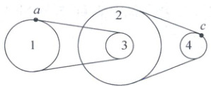 5. (2024 江西丰城检测)如图所示为两级皮带传动装置,转动时皮带均不打滑,中间两个轮子是固定在一起的,轮 1 与轮 2 的半径之比为 $ 2:3 $,轮 3 与轮 4 的半径相同,轮 1 与轮 3 的半径之比为 $ 2:1 $,下列关于轮 1 边缘上的 $ a $ 点和轮 4 边缘上的 $ c $ 点运动参量的关系说法正确的是 (