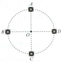 7.AC 解析:盒子经过最高点 A 时与小球间恰好无作用力,此时对球,由重力提供向心力,有 $mg =m\frac{v^{2}}{R}$,则该盒子做匀速圆周运动的线速度为 $v=\sqrt{gR}$,A 正确;盒子做匀速圆周运动的周期为 $T=\frac{2\pi R}{v}=2\pi \sqrt{\frac{R}{g}}$,B 错误;盒子经过最低点 C 时,对球,由支持力与重力的合力提供向心力,有 $N - mg =m\frac{v^{2}}{R}$,解得 $N = 2mg$,C 正确;盒子经过与圆心 O 等高处的 B 点时,球受到盒子左壁水平向右的弹力 $F_{x}$ 提供向心力,有 $F_{x}=m\frac{v^{2}}{R}=mg$,根据牛顿第三定律,可知小球对盒子左壁的压力大小为 $F_{压}=F_{x}=mg$,D 错误.