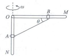 (2) 若金属环 B 与水平粗糙杆 OM 间动摩擦因数$\mu =0.25$,要使金属环 B 相对细杆静止不动,求角速度ω的范围.