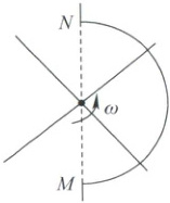 4.BC 解析:设人跑动的线速度大小为$v$,则人从$M$跑到$N$的运动时间为$t=\frac{\pi R}{v}$,人做圆周运动的角速度$\omega_1=\frac{v}{R}$,要让人顺利地从$M$跑到$N$不碰到支架,则$0\leq(\omega_1-\omega)t<\frac{\pi}{2}$或$0\leq(\omega-\omega_1)t<\frac{\pi}{2}$,解得$\frac{2\omega R}{3}<v<2\omega R$,故B、C正确.