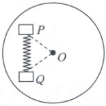 10. (2025 河邯郸市期中)如图所示(俯视图),用自然长度为 l₀,劲度系数为 k 的轻质弹簧,将质量都是 m 的两个物块 P、Q 连接在一起,放置在能绕 O 点在水平面内转动的圆盘上,物块 P、Q 和 O 点恰好组成一个边长为 2l₀的正三角形.已知物块 P、Q 和圆盘间的最大静摩擦力均为$\sqrt{3}kl₀$,现使圆盘带动两个物块以不同的角速度做匀速圆周运动,则 (