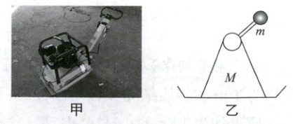 10. (2024 广东惠州一中月考)图甲为一种小型打夯机,原理可简化为一个质量为 $ M $ 的支架(含电动机)上,由一根长为 $ l $ 的轻杆带动一个质量为 $ m $ 的铁球(可视为质点)转动,如图乙。某次打夯过程中,铁球以角速度 $ \omega $ 匀速转动,重力加速度为 $ g $,则(