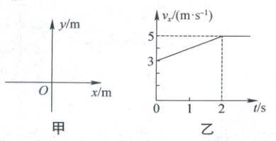 10. (2024 山西大同检测)一物体在如图甲所示的xOy平面上运动,其x轴方向的v_x-t图像如图乙所示,y轴方向的轨迹方程为$y= \frac{1}{2}t²-2t+3(m),$已知t=0时物体的位置坐标为(1m,3m),下列说法正确的是 (