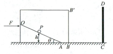 11. (2025浙江宁波期末)如图所示,粗糙水平面上有一长方体箱子,箱子内部固定有光滑斜面$OA$,斜面倾角$\theta = 37^{\circ}$,箱子右边固定有竖直挡板$CD$.现用水平恒力$F$推动箱子使其由静止开始向右做匀加速直线运动,此时斜面$OA$上的小球$P$(可视为质点)与斜面保持相对静止.已知整个装置(包括箱子、斜面和小球)的质量$M = 6kg$,箱子与水平面间的动摩擦因数$\mu = 0.1$,$P$离箱底的高度$h = 0.45m$,斜面底端$A$与箱子底部右端$B$相距$x_{AB} = 0.15m$,不计空气阻力.($\sin37^{\circ}$取$0.6$,$\cos37^{\circ}$取$0.8$)
