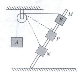 9. (广东惠州期末)如图所示,物块B套在倾斜杆上,并用轻绳绕过轻质定滑轮与物块A相连(定滑轮体积大小可忽略),现使物块B沿杆由M点匀速下滑到N点(在P点时,绳子与杆垂直),运动中连接A、B的轻绳始终保持绷紧状态.在物块B下滑过程中,下列说法正确的是(