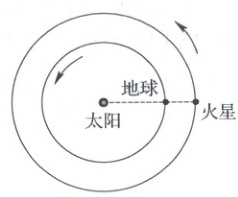 8. (湖北卷)2022年12月8日,地球恰好运行到火星和太阳之间,且三者几乎排成一条直线,此现象被称为“火星冲日”。火星和地球几乎在同一平面内沿同一方向绕太阳做圆周运动,火星与地球的公转轨道半径之比约为$3:2$,如图所示。根据以上信息可以得出(