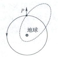 9. (2024湖北卷)太空碎片会对航天器带来危害。设空间站在地球附近沿逆时针方向做匀速圆周运动,如图中实线所示。为了避开碎片,空间站在$P$点向图中箭头所指径向方向在极短时间内喷射气体(忽略喷射气体的质量),使空间站获得一定的反冲速度,从而实现变轨。变轨后的轨道如图中虚线所示,其半长轴大于原轨道半径,则(