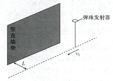 3. (2025 山东济南模拟)如图所示,弹珠发射器(可视为质点)固定于足够高的支架顶端,支架沿着与竖直墙壁平行的方向以速度$v_{1}$水平运动,同时弹珠发射器可在水平面内沿不同方向发射相对发射器速度大小为$v_{2}(v_{2} > v_{1})$的弹珠.弹珠从发射到击中墙壁的过程中水平方向位移为$x$,竖直方向位移为$y$.已知发射器到墙壁的垂直距离为$L$,重力加速度为$g$,不计空气阻力,下列说法正确的是(