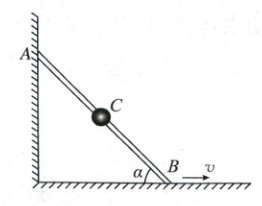 11. (多选,2025 湖北武汉期末)如图所示,轻杆AB的中点固定着小球C,现使A端不脱离墙面,B端在水平面上以v向右匀速运动.当杆与水平面成α角时,下列说法正确的是(