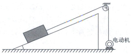 4. (2025 云南昭通三校联考)如图所示,借助电动机和斜面将质量为$10 kg$的货物用最短的时间从斜面底端拉到斜面顶端.货物依次经历匀加速、变加速、匀速、匀减速四个阶段,到达顶端时速度刚好为零.已知电动机的额定功率为$900 W$、绳子的最大拉力为$150 N$,绳子与斜面平行,斜面长度为$29.7 m$,倾角$\theta = 30^{\circ}$,货物与斜面间的动摩擦因数为$\frac{\sqrt{3}}{3}$,减速阶段加速度大小不超过$5 m/s^{2}$,货物可看作质点,$g$取$10 m/s^{2}$.下列说法正确的是 (