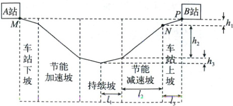 2.B解析:质量为$m$的物体在长度为$s$、倾角为$\theta$的粗糙斜面上滑行时,克服摩擦力做功$W_f = \mu mg\cos\theta · s$,$s\cos\theta$是斜面底边的长度,则滑块从$M$恰好到$N$,由动能定理得$mgh_1 - \mu mg(2l_1 + 2l_2 + l_3) = 0 - \frac{1}{2}mv_0^2$,解得$\mu = \frac{v_0^2 + 2gh_1}{2g[2(l_1 + l_2) + l_3]}$,若要使滑块从$M$恰能到达$B$站$P$处,设该滑块初速度的大小应调整为$v$,由动能定理得$- \mu mg(2l_1 + 2l_2 + 2l_3) = 0 - \frac{1}{2}mv^2$,解得$v = \sqrt{\frac{2(v_0^2 + 2gh_1)(l_1 + l_2 + l_3)}{2(l_1 + l_2) + l_3}}$,故B正确。