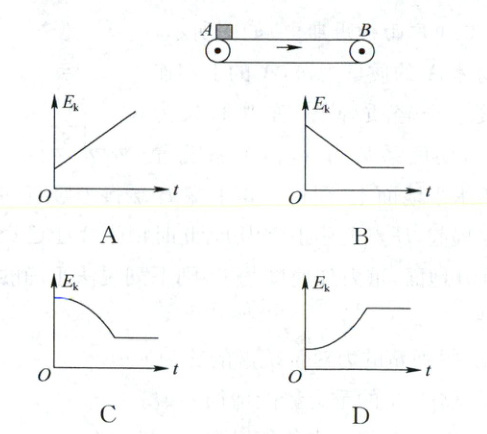 3. (江苏无锡期末)传送带以恒定速率顺时针转动,物块以一定的初速度冲上传送带.物块的动能$E_{k}$随时间$t$变化的图线可能正确的是 (