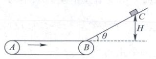 8. (多选,2024 四川凉山检测)如图所示,足够长的水平传送带 AB 与斜面 BC 在 B 点平滑连接,斜面倾角 $\theta = 37°$,质量为 1 kg 的物块从距传送带高为 H = 2.4 m 的 C 点静止释放,物块与斜面和传送带间的动摩擦因数均为 0.5,传送带顺时针运行速度恒为 5 m/s,已知重力加速度 g 取 10 m/s²,sin 37°取 0.6,cos 37°取 0.8. 下列说法正确的是 (
