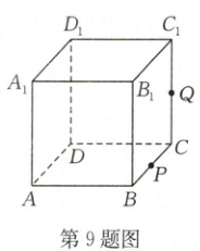 9.ABD[解析]对于$A$,当$0\lt CQ\lt\frac{1}{2}$时,过$A$,$P$,$Q$三点的截面与棱$DD_1$相交,截面$S$为四边形,如图$1$所示,故$A$正确.