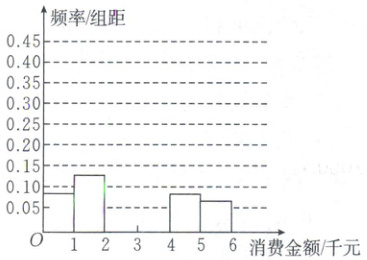 (3)根据题意,消费金额在$(0,1]$内应抽取的人数为$\frac{8}{8+12+8}×7=2$;