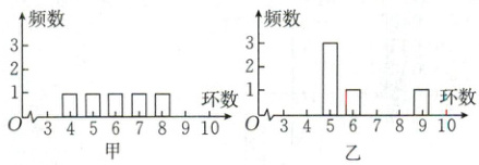 4. [2024·陕西师大附中期中](多选)甲、乙两人在一次射击比赛中各射靶5次,两人成绩的条形统计图如图所示,则(