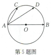 5. 如图,已知 AB 是圆 O 的直径,C,D 是半圆弧的两个三等分点,$\overrightarrow{AB}=\boldsymbol{a}$,$\overrightarrow{AC}=\boldsymbol{b}$,则$\overrightarrow{AD}=$(