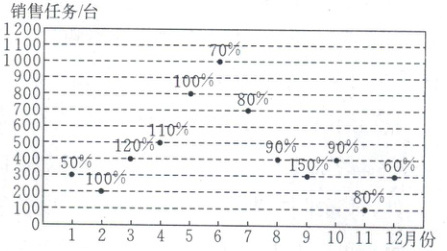 11. [2024·黄冈中学期末]如图是某公司 2023 年 1 月至 12 月空调销售任务及完成情况的统计图,如 10 月份销售任务是 400 台,完成率为 $ 90\% $,下列叙述正确的有(