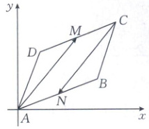 11. [2024·武汉质检]如图所示,在平行四边形$ABCD$中,$A(0,0)$,$B(3,1)$,$C(4,3)$,$D(1,2)$,$M$,$N$分别为$DC$,$AB$的中点,求$\overrightarrow{AM}$,$\overrightarrow{CN}$的坐标,并判断$\overrightarrow{AM}$,$\overrightarrow{CN}$是否共线。