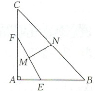 8.B[解析]对于A,因为$\overrightarrow{AE}=\lambda\overrightarrow{AB}$,$\overrightarrow{AF}=\mu\overrightarrow{AC}$,且$|\overrightarrow{BE}| = |\overrightarrow{AF}|$,所以$(1 - \lambda)|\overrightarrow{AB}| = \mu|\overrightarrow{AC}|$,所以$(1 - \lambda)^2 = \mu^2$,其中$\lambda,\mu\in(0,1)$,所以$1 - \lambda = \mu$,即$\lambda + \mu = 1$,所以A正确。对于B,当$\lambda = \mu$时,$\overrightarrow{EF}=\overrightarrow{AF}-\overrightarrow{AE}=\mu\overrightarrow{AC}-\lambda\overrightarrow{AB}=\mu(\overrightarrow{AC}-\overrightarrow{AB})=\mu\overrightarrow{BC}$,可得$\overrightarrow{EF}$与$\overrightarrow{BC}$为共线向量,所以B不正确。对于C,在等腰直角$\triangle ABC$中,$AB = AC = 2$,$\angle BAC = 90^{\circ}$,且$\overrightarrow{AE}=\lambda\overrightarrow{AB}$,$\overrightarrow{AF}=\mu\overrightarrow{AC}$,所以$S_{\triangle AEF}=\frac{1}{2}|\overrightarrow{AE}|·|\overrightarrow{AF}|=\frac{1}{2}|\lambda\overrightarrow{AB}|·|\mu\overrightarrow{AC}|=2\lambda\mu$,由$\lambda + \mu = 1$,可得$\lambda\mu\leq(\frac{\lambda + \mu}{2})^2=\frac{1}{4}$,所以$S_{\triangle AEF}=2\lambda\mu\leq\frac{1}{2}$,当且仅当$\lambda = \mu=\frac{1}{2}$时,等号成立,所以C正确。对于D,如图所示,以A为坐标原点,AB,AC分别为x轴、y轴建立平面直角坐标系,则$A(0,0)$,$B(2,0)$,$C(0,2)$,则$\overrightarrow{AE}=\lambda\overrightarrow{AB}=(2\lambda,0)$,$\overrightarrow{AF}=\mu\overrightarrow{AC}=(0,2\mu)$。因为M,N分别为EF,BC的中点,所以$M(\lambda,\mu)$,$N(1,1)$。又因为$\lambda^2+\mu^2=1$,$\lambda,\mu\in(0,1)$,可得点M在单位圆的劣弧PQ上,$|AM| = 1$,所以$|MN|\geq|AN|-|AM|=\sqrt{2}-1$,当且仅当A,M,N三点共线时,等号成立,所以$|MN|$的最小值为$\sqrt{2}-1$,所以D正确。