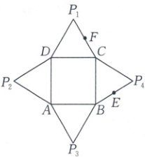 2. [2024·阜阳一中月考](多选)一几何体的平面展开图如图所示(顶点$P$在展开图中分别为$P_{1}$,$P_{2}$,$P_{3}$,$P_{4}$),其中四边形$ABCD$为正方形,$E$,$F$分别为$P_{4}B$,$P_{1}C$的中点,则下列结论正确的有(