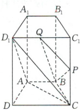 3.证明:由题意知$D_1Q // \frac{1}{2}CD$,$AB // \frac{1}{2}CD$,所以$D_1Q // AB$,所以四边形$D_1QBA$为平行四边形,所以$D_1A // QB$。因为$Q$,$P$分别为$C_1D_1$,$CC_1$的中点,所以$QP // D_1C$。又$D_1C \cap D_1A = D_1$,$QP \cap QB = Q$,$D_1C$,$D_1A \subset$平面$AD_1C$,$QP$,$QB \subset$平面$BPQ$,所以平面$AD_1C //$平面$BPQ$。