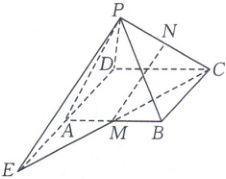 (2)因为平面$MNQ //$平面$PAD$,且平面$PEC \cap$平面$MNQ = MN$,平面$PEC \cap$平面$PAD = PE$,