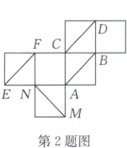 2.ACD 【解析】画出原正方体如图所示,连接DN,DM,由图可知,A正确,B错误;因为MN=DN=DM,所以△DMN为等边三角形,又AB//DN,所以AB与MN所在直线成60°角,故C正确;显然MN与EF所在直线异面,故D正确.