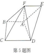 5. [2024·信阳一中月考]如图,已知在五面体 ABCDEF 中,$AB// DC,∠BAD = \frac{π}{2},CD = AD = 3$,四边形 ABFE 为平行四边形,$FA⊥$平面 ABCD,$FC = 5$,则直线 AB 到平面 EFCD 的距离为