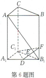 6. [2024·苏州中学月考]如图,在直三棱柱 ABC - $A_{1}B_{1}C_{1}$中,侧棱长为 2,$AC = BC = 1,∠ACB = 90^{\circ}$,D 是$A_{1}B_{1}$的中点,F 是$BB_{1}$上的动点,$AB_{1}$,DF 交于点 E. 要使$AB_{1}⊥$平面$C_{1}DF$,则线段$B_{1}F =$