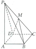 如图,在四棱锥 P - ABCD 中,$PA⊥$平面 ABCD,$PA = AB = 2,BC = CD = 1,PC = 3$,.