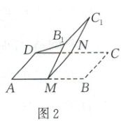3. [2024·天津静海一中期中]如图1所示,在正方形$ABCD$中,$M,N$分别是$AB,CD$的中点,沿$MN$将四边形$MBCN$折起,使点$B,C$分别落在$B_1,C_1$处,且二面角$B_1 - MN - A$的大小为$120^{\circ}$,如图2所示,则$B_1D$与平面$AMND$所成的角的正切值为(